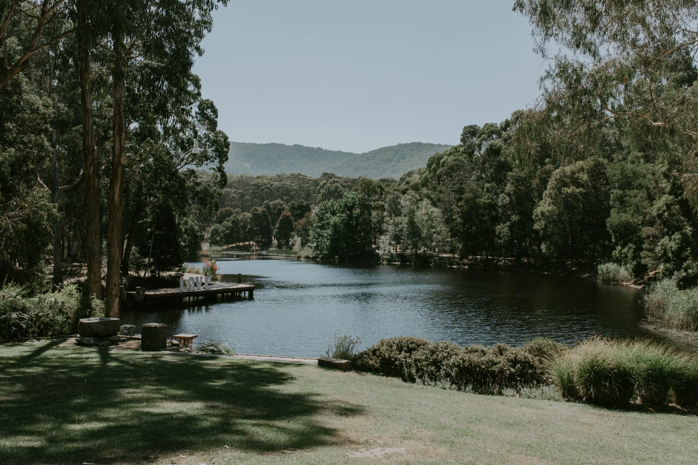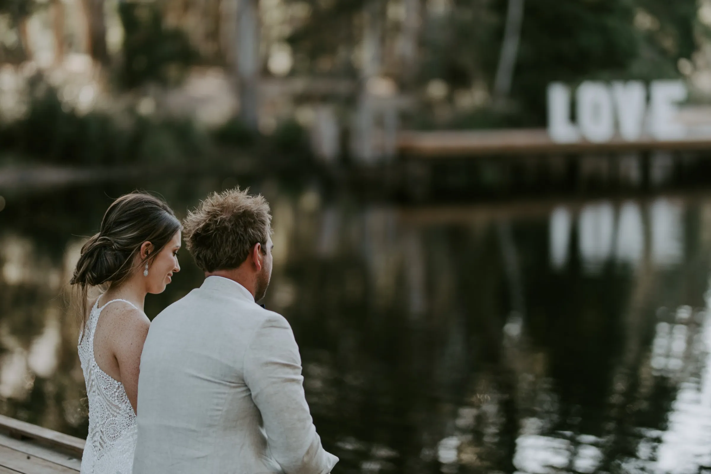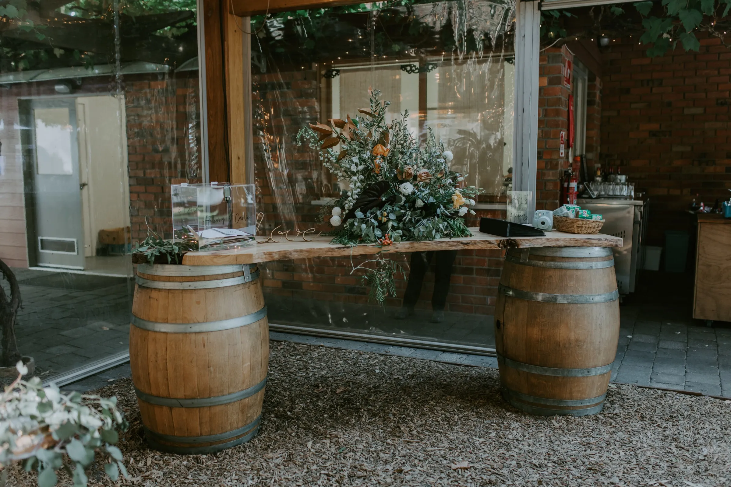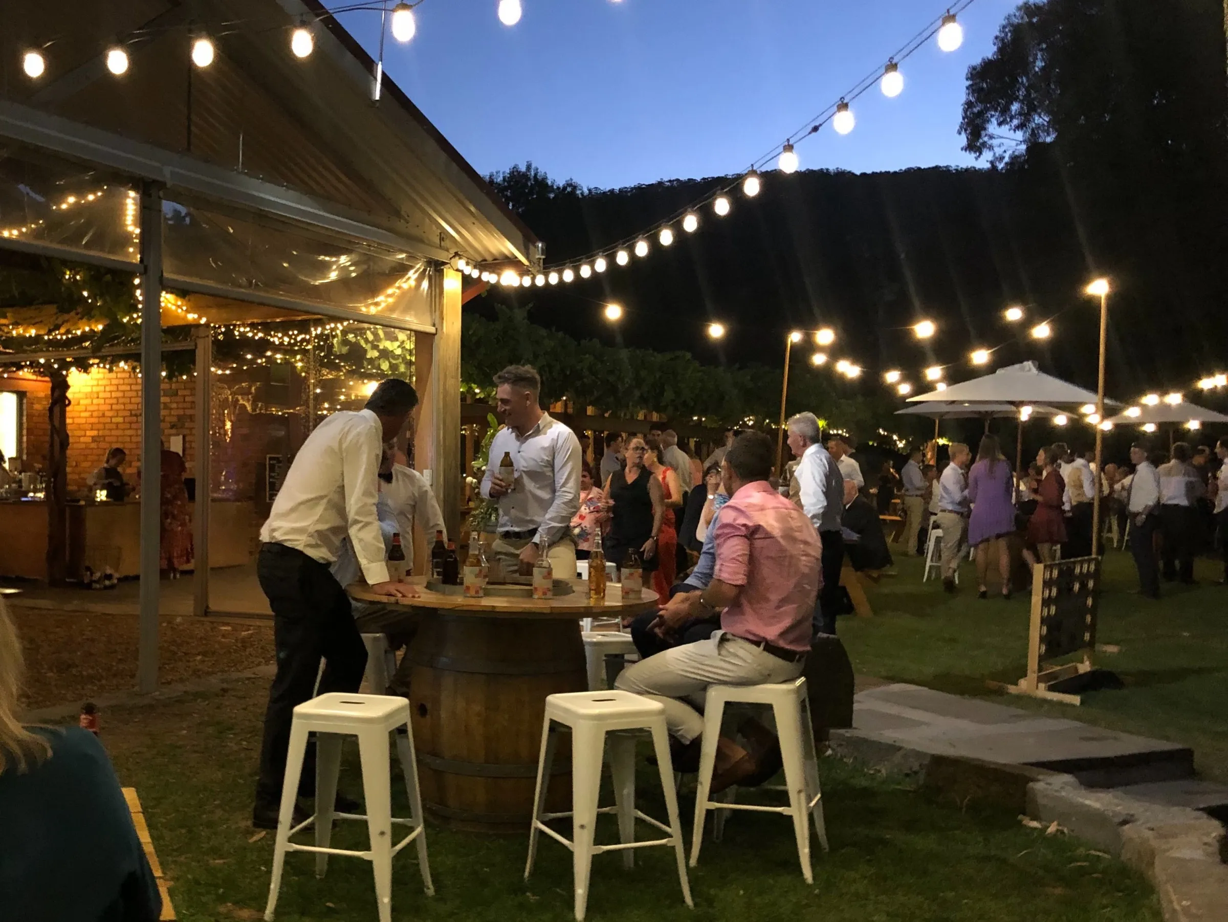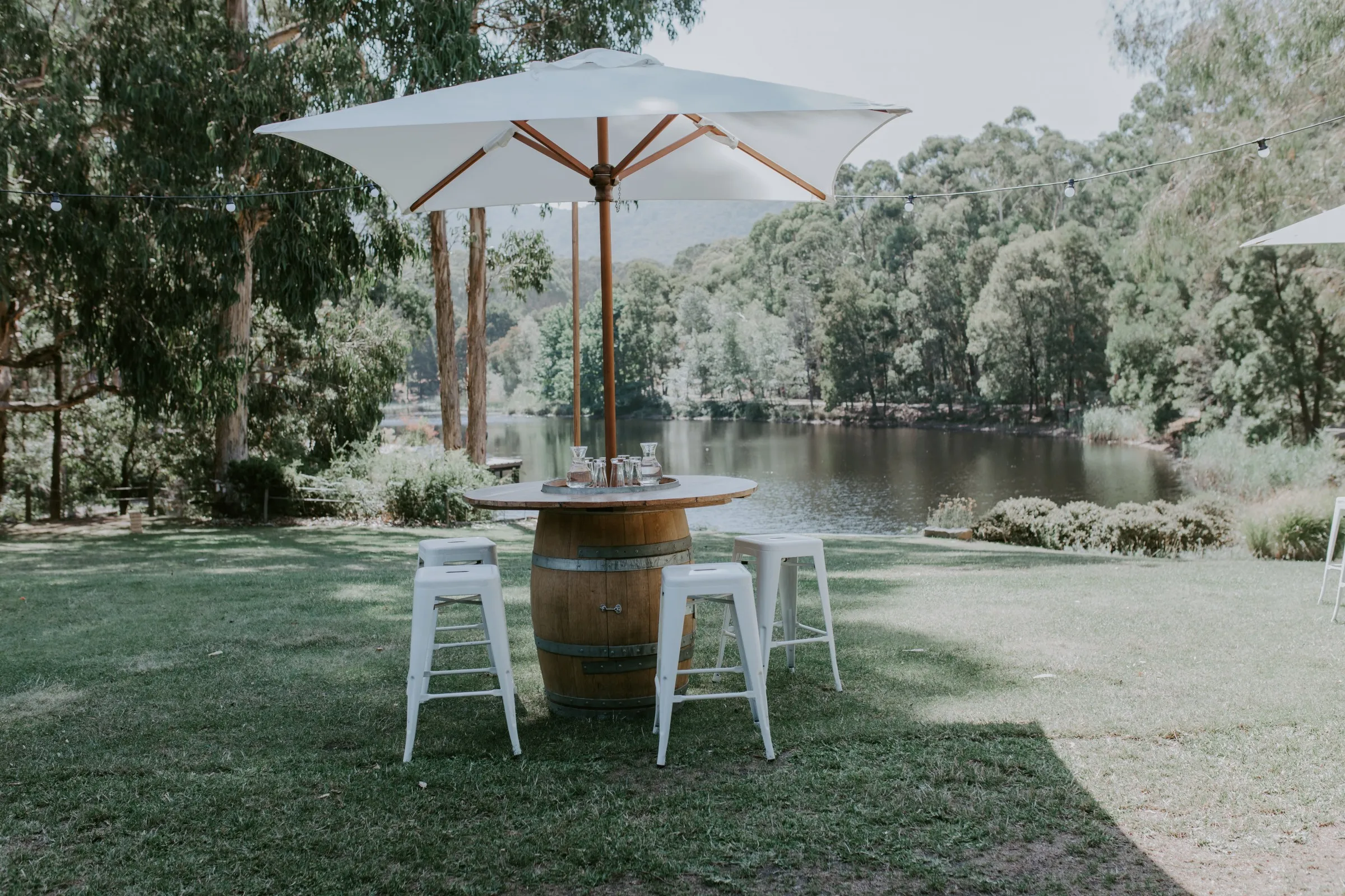 Creating magic alongside Carlie and Anthony was truly special. We felt like part of the family as we collaborated on every detail to bring Carlie's vision to life. Cave Hill Creek natural beauty provided a stunning backdrop, and with our festoon lights illuminating the party, the atmosphere was electric. Cocktail wine barrels, umbrellas, and Tolix stools added a touch of whimsy, perfectly capturing Carlie's desired aesthetic. As guests enjoyed the view of the lake, our LOVE letters stood out majestically, reflecting in the water—a beautiful symbol of their love story. We wish you both a lifetime of love, laughter, and happiness together!