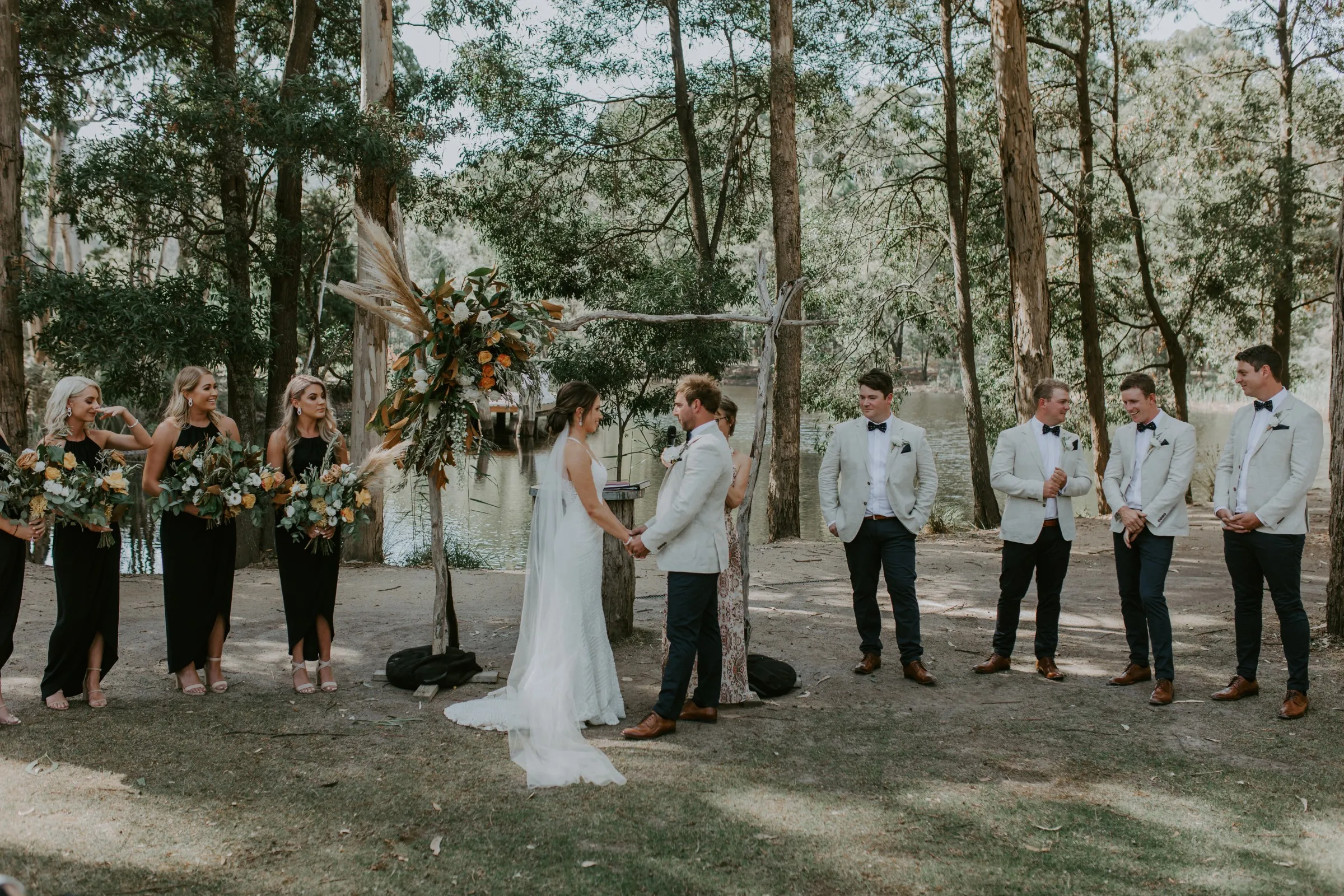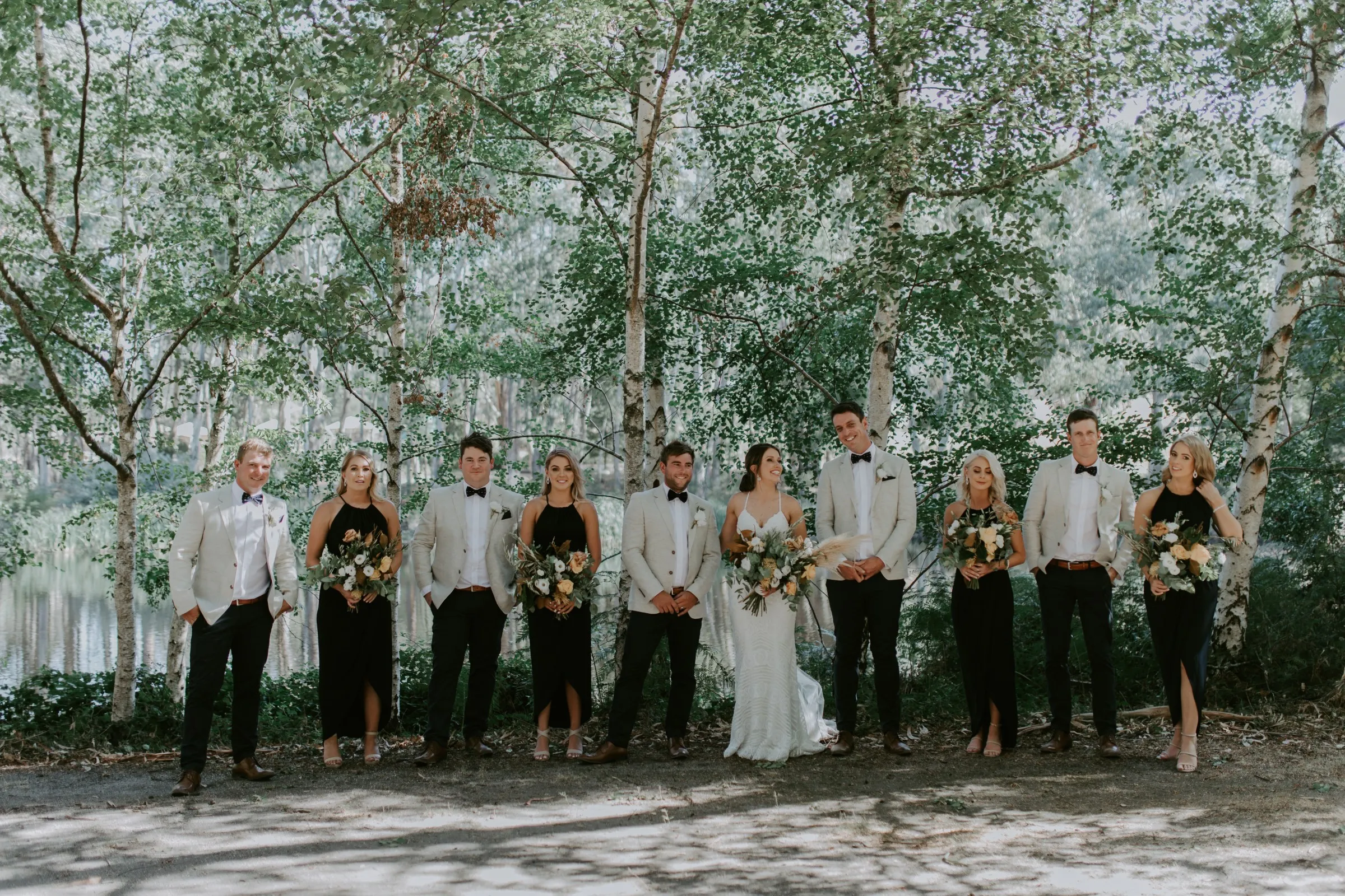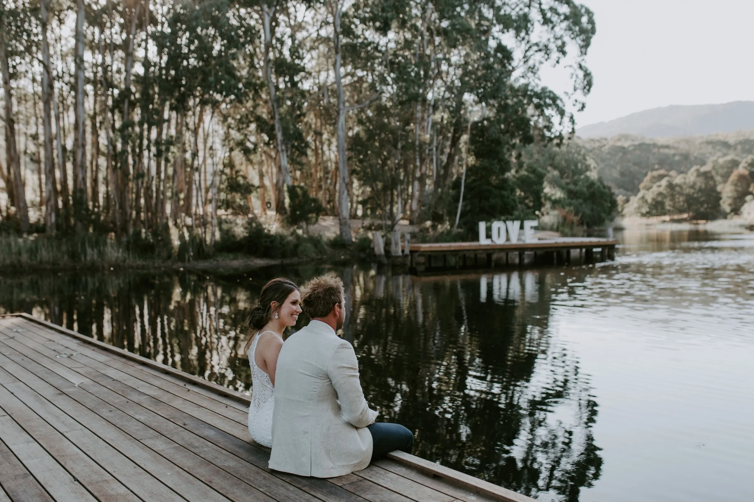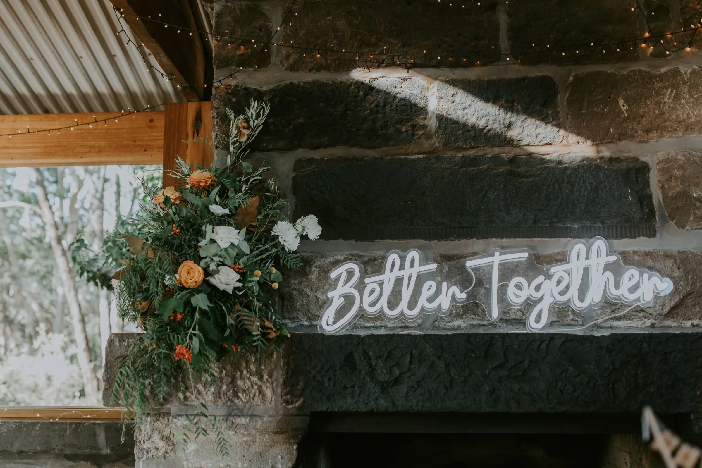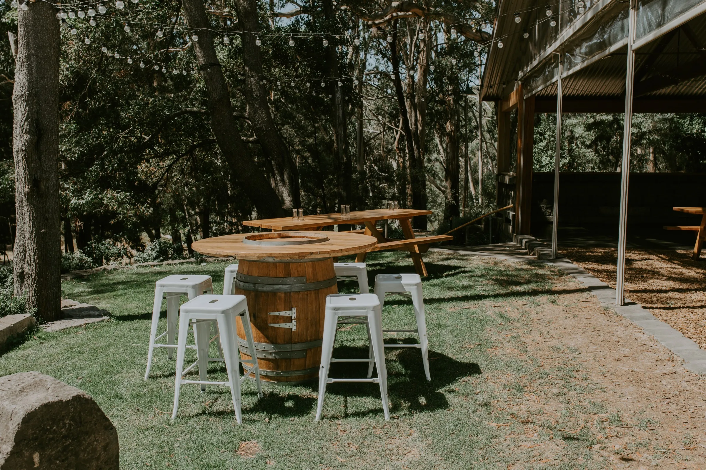 Creating magic alongside Carlie and Anthony was truly special. We felt like part of the family as we collaborated on every detail to bring Carlie's vision to life. Cave Hill Creek natural beauty provided a stunning backdrop, and with our festoon lights illuminating the party, the atmosphere was electric. Cocktail wine barrels, umbrellas, and Tolix stools added a touch of whimsy, perfectly capturing Carlie's desired aesthetic. As guests enjoyed the view of the lake, our LOVE letters stood out majestically, reflecting in the water—a beautiful symbol of their love story. We wish you both a lifetime of love, laughter, and happiness together!